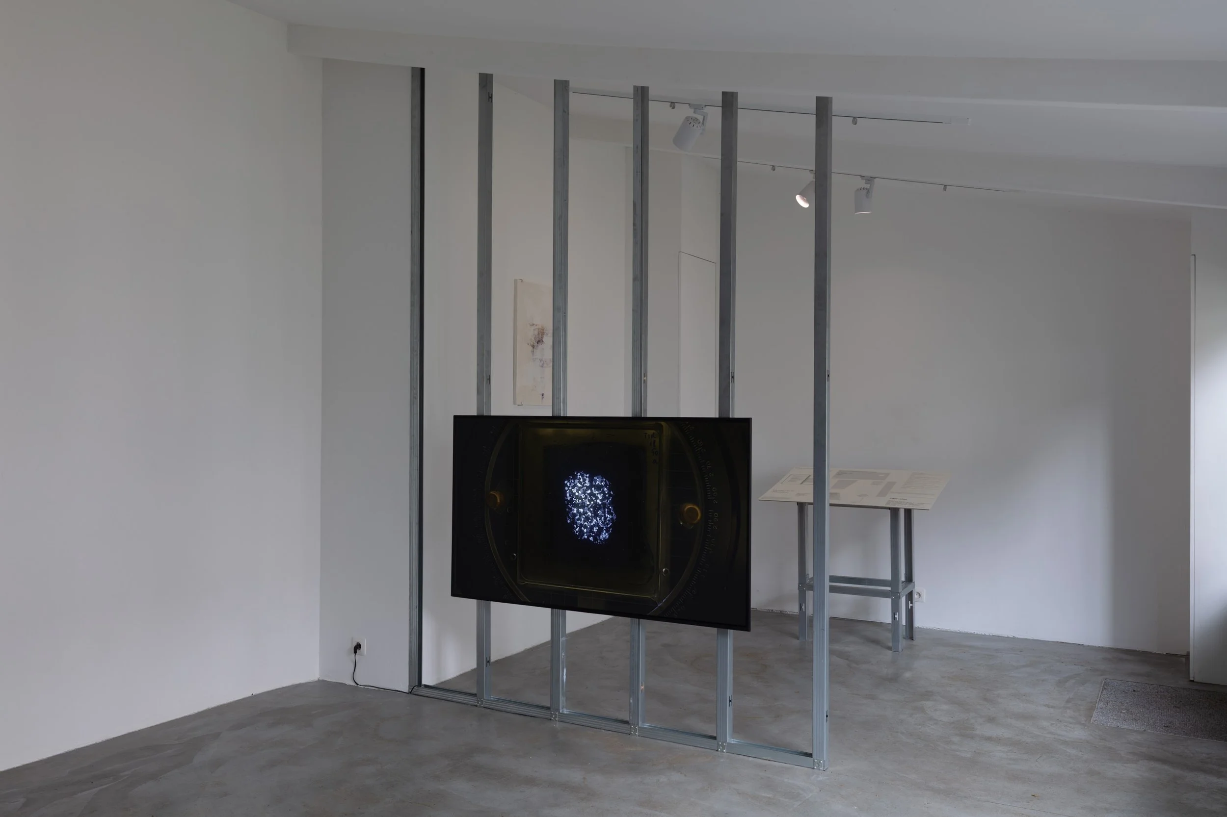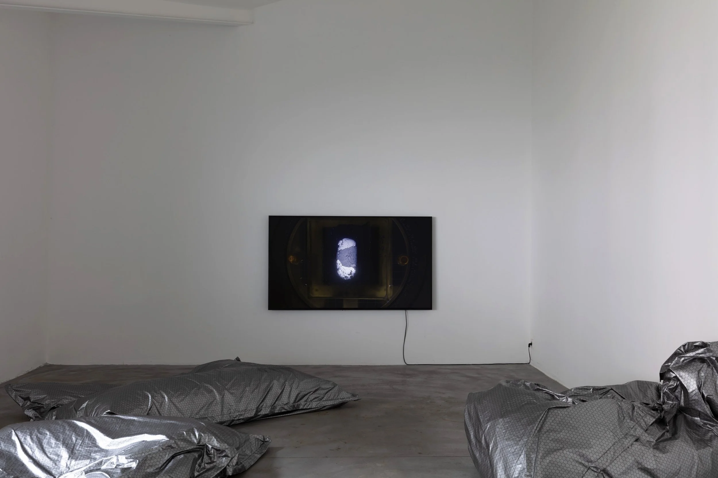 Muesli Collective, whose practice often puts material to the test through potential transmutations caused by environmental factors or guided intervention, chose to present a stage of their ongoing research. This project focuses on the progressive disintegration of ice samples extracted from Antarctic ice cores.